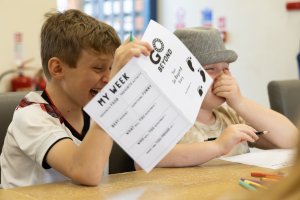 A few days into the break, Alfie found the confidence to try rock climbing. Nervous at first, he pushed himself to keep going, supported by the team and cheered on by the other children, until he reached the top.